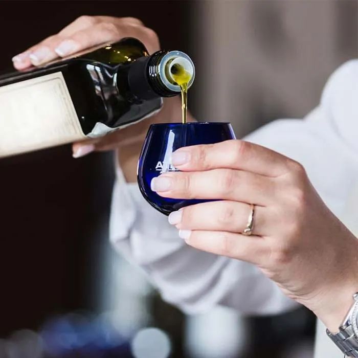 采用藍色郁金香型橄欖油品鑒專用杯,